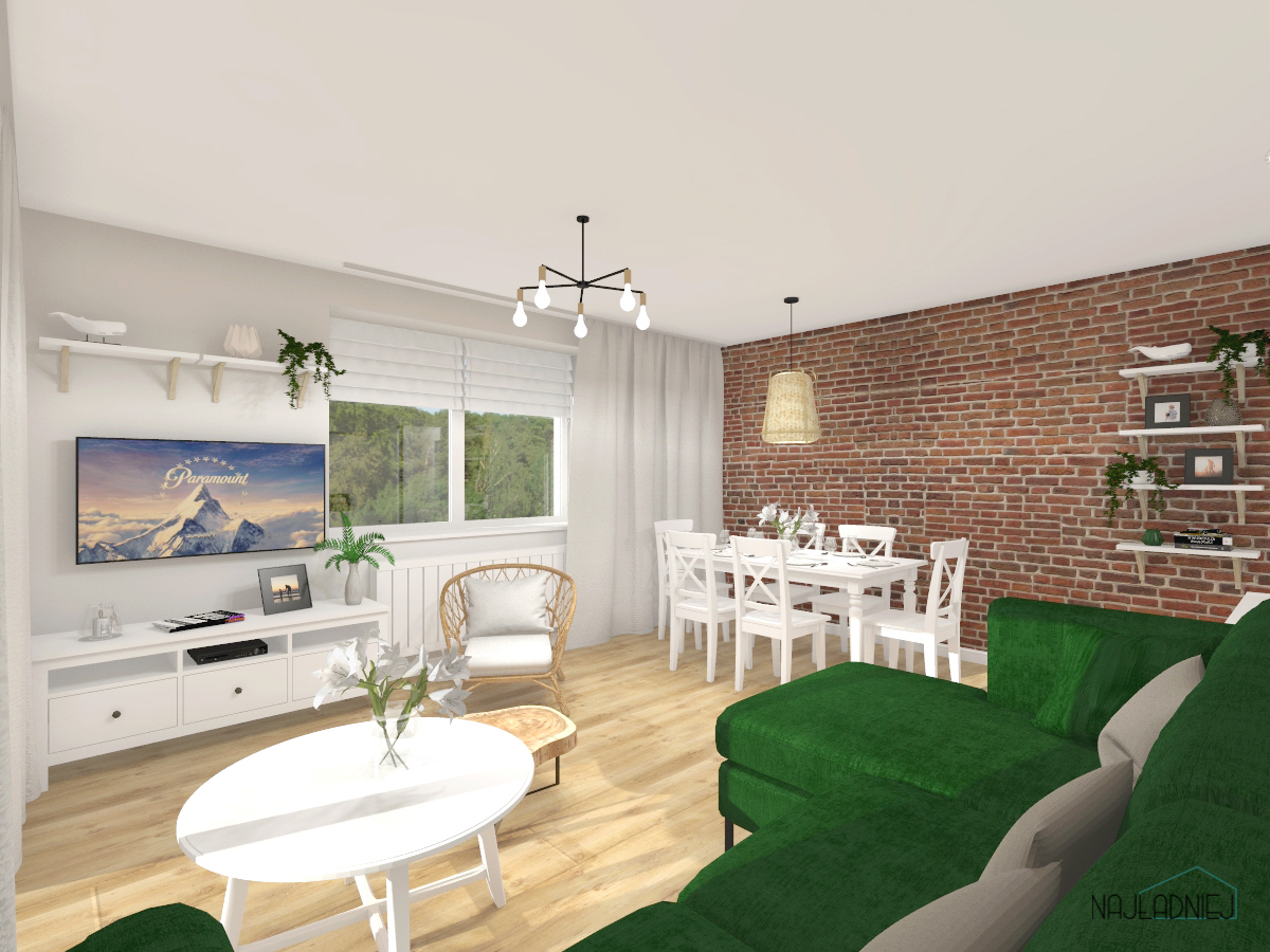 Salon i sypialnia - cegła w roli głównej